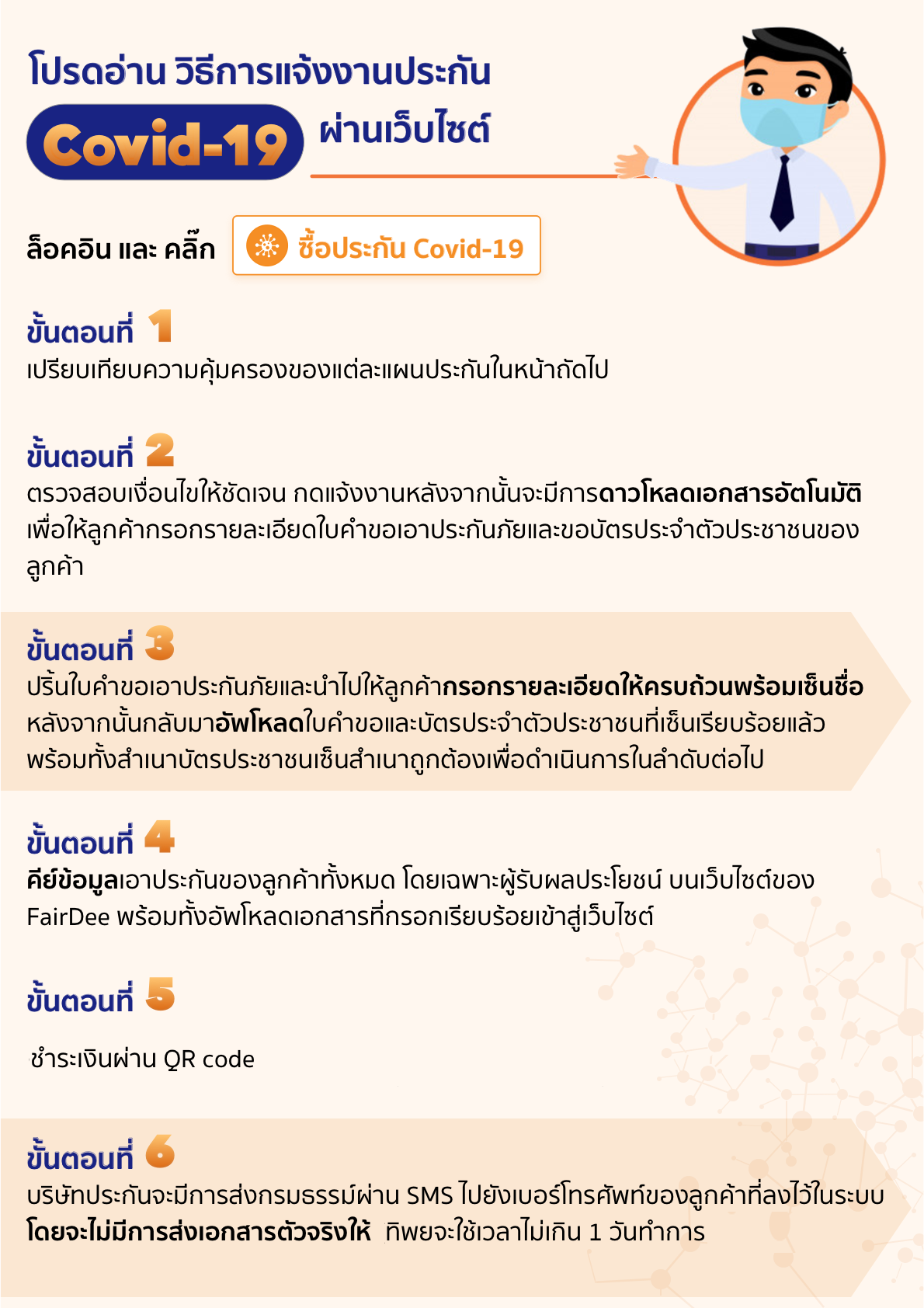 แจ้งงาน ผ่านเว็บไซต์จากบ้าน หยุดเชื้อ เพื่อชาติ กับ FairDee! เรามีประกัน COVID-19 จาก 1 บริษัทชั้นนำ