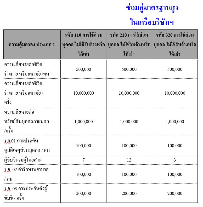 รายละเอียดความคุ้มครองซ่อมห้าง