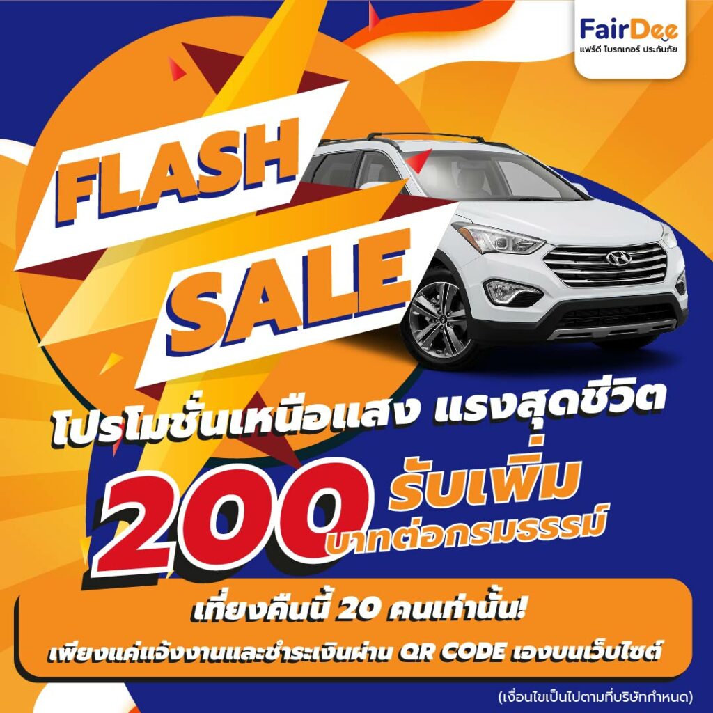 ทุกวันเสาร์ในเดือนมิถุนายน 2564 นับตั้งแต่ 00.01 นาฬิกา เป็นต้นไป สำหรับ 20 ท่านแรก ที่คีย์งานภาคสมัครใจและชำระเงินด้วยตนเอง (ชำระผ่าน QR CODE เท่านั้น) ผ่านระบบของแฟร์ดี (เว็บไซต์หรือแอปพลิเคชัน) รับเพิ่ม 200 บาท/กรมธรรม์