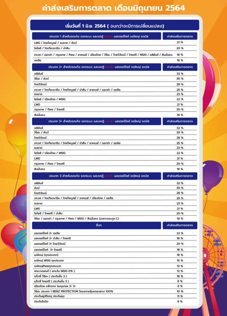 รับสูงสุดถึง 6% ต่อกรมธรรม์เมื่อขายภาคสมัครใจครบ 6 กรมธรรม์ในเดือนมิถุนายน 2564 นับจากวันที่ชำระเงิน (ไม่รวมงานผ่อนเงินสด)