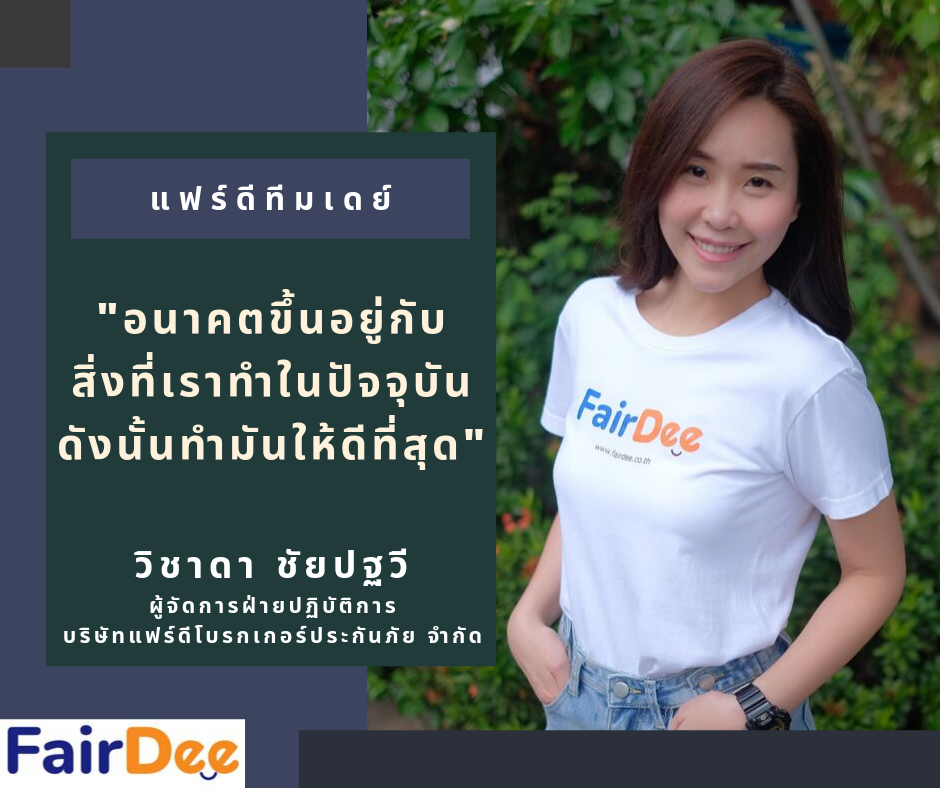 พวกเรามาฟังบทสัมภาษณ์ของฝ่ายปฏิบัติการกันเถอะ! อธิบายถึงบทบาท หน้าที่ของคุณว่ามีส่วนสำคัญกับบริษัทอย่างไรค่ะ? ดูแลระบบปฏิบัติการณ์และทีมงาน Operation ให้ปฏิบัติหน้าที่อำนวยความสะดวกให้กับตัวแทนในการทำงานกับแฟร์ดีด้วยความรวดเร็วและถูกต้อง นิยามคำว่า “รับผิดชอบ” ของคุณหมายถึงอะไร ? รับรู้บทบาทและหน้าที่ของตนเองในบริษัท ทำทุกอย่างที่ได้รับมอบหมายได้อย่างราบรื่นและสำเร็จได้ทันเวลา เล่าเรื่องราวผลงานของคุณที่เคยทำมา รวมถึงเคล็ดลับของคุณที่จะทำให้งานประสบความสำเร็จ? ทำตามเป้าหมายตามที่ตั้งไว้ได้ ด้วยการนำทีมให้ทำงานด้วยกันได้อย่างมีประสิทธิภาพ และบรรลุเป้าหมายไปด้วยกัน เคล็ดลับที่ทำให้ประสบความสำเร็จ คือ เข้าใจและเข้าถึงในการทำงานของทีมงานแต่ละคน คอยช่วยเหลือและสนับสนุนพวกเขาอย่างเต็มที่ มีอะไรอยากจะสัญญากับตัวแทนไหมครับ ? สัญญาว่า จะรับฟังทุกความคิดเห็นเพื่อนำมาปรับปรุงและพัฒนาให้ดีขึ้นอย่างต่อเนื่องเพื่ออำนวยความสะดวกให้ตัวแทนทุกท่านได้มากที่สุด